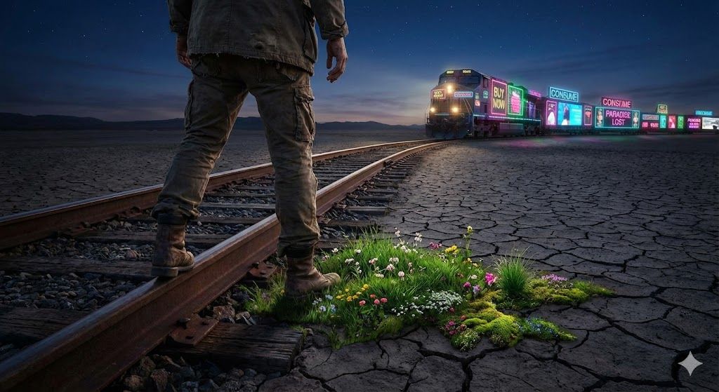 “You aren’t a traveler; you are a train. You feel fast only because you are moving on rails someone else laid down for you. You think you chose your destination, but you only chose between Option A and Option B on a screen.”